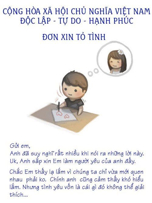 2. Lấy một mảnh giấy và vài cây bút chì màu, vẽ hình hai đứa bé ngây thơ đang nắm tay. Tiếp theo bạn có thể viết tên hai bạn lên và ghi "Mình yêu nhau đi/Nắm tay anh đi khắp thế gian, em nhé!". Đây là cách thể hiện một tình yêu trong sáng nhưng lại thể hiện được sự thật lòng của bạn.
