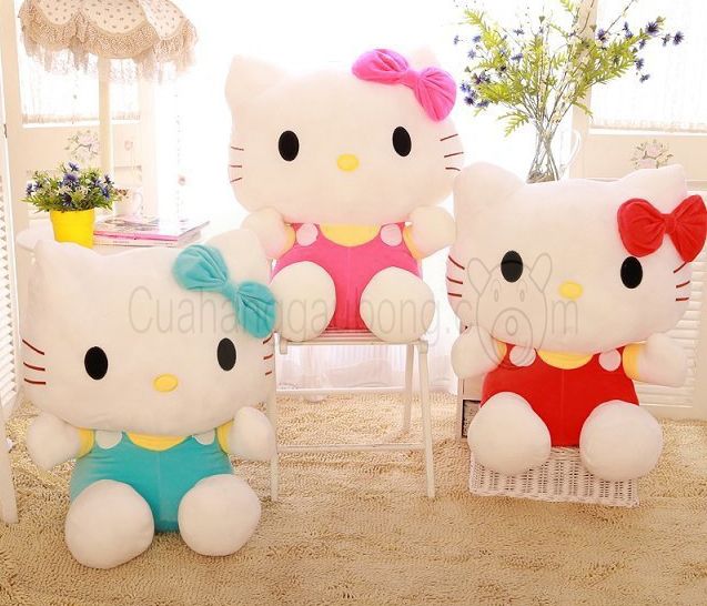 Đến với cửa hàng gấu bông, bạn tha hồ lựa chọn cho mình những chú mèo Hello Kitty với đầy đủ màu sắc và kích cỡ. Với chất liệu bông mềm mại tại cảm giác vô cùng thoải mái khi ôm, những chú mèo Hello Kitty lun được lòng các bạn nữ